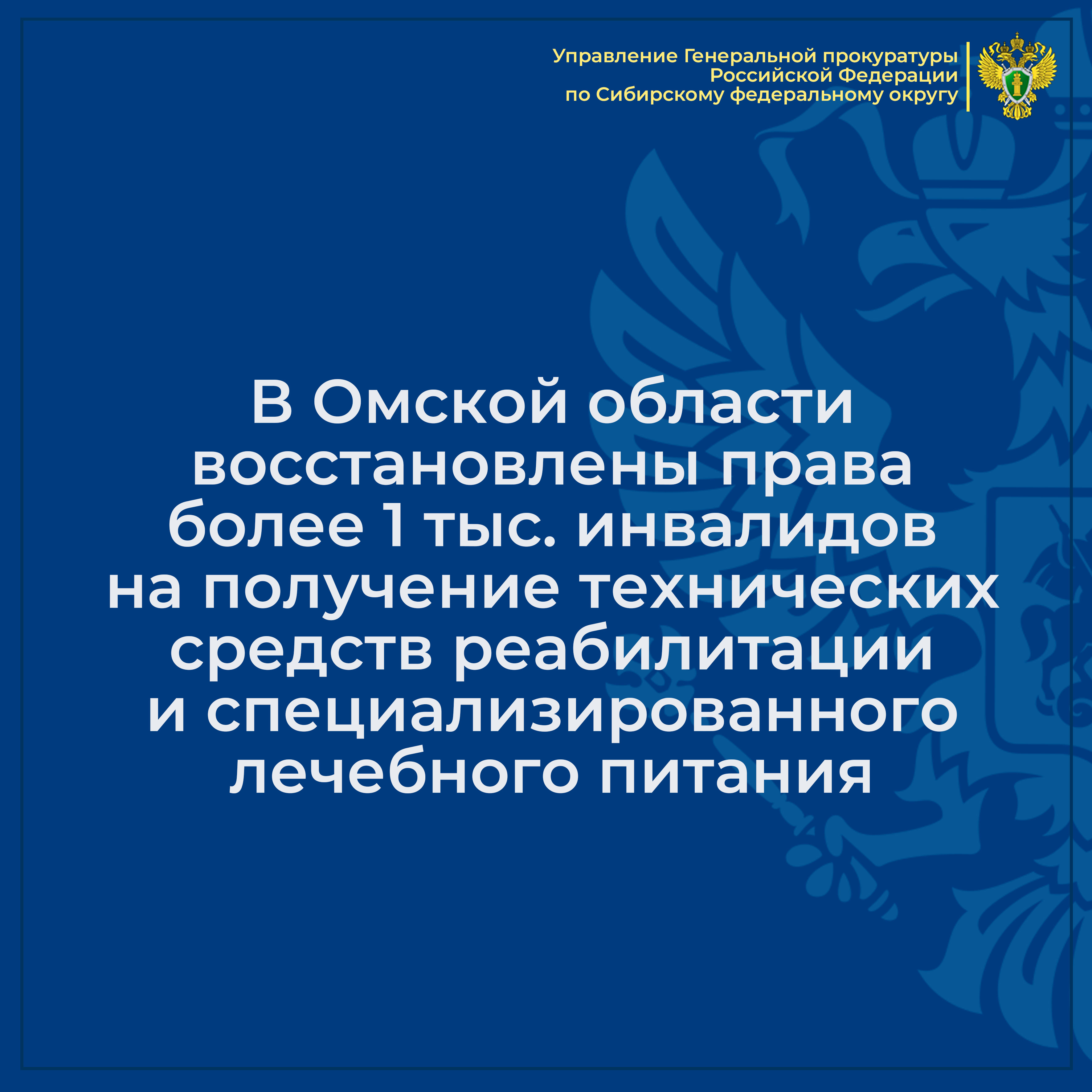 Управлением Генеральной прокуратуры Российской Федерации по Сибирскому Федеральному округу с привлечением прокуратуры Омской области рассмотрено обращение супруги участника СВО, получившего ранение в зоне проведения специальной военной операции, о длительном необеспечении уволенного в запас военнослужащего лечебным питанием и техническими средствами реабилитации.