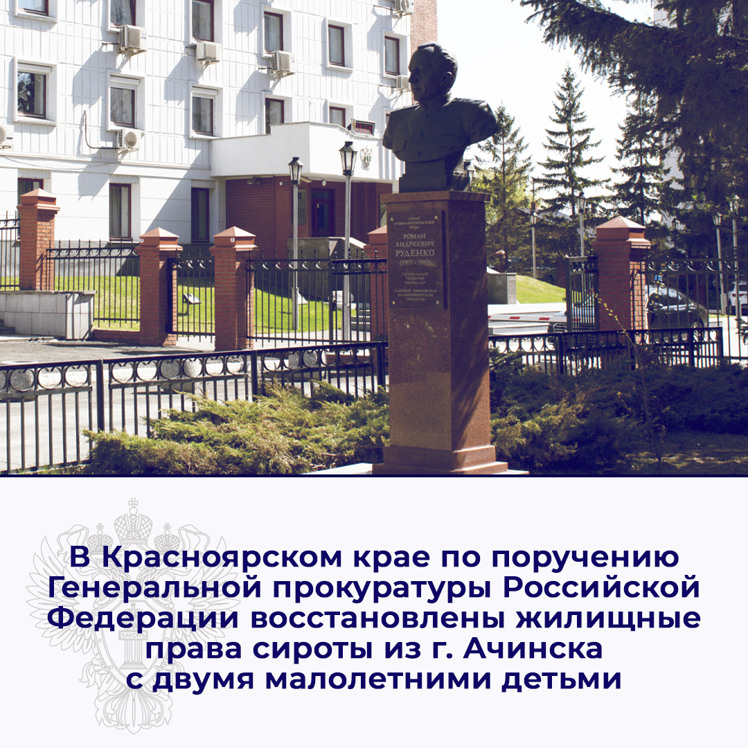 В Красноярском крае по поручению Генеральной прокуратуры Российской Федерации восстановлены жилищные права сироты из г. Ачинска с двумя малолетними детьми