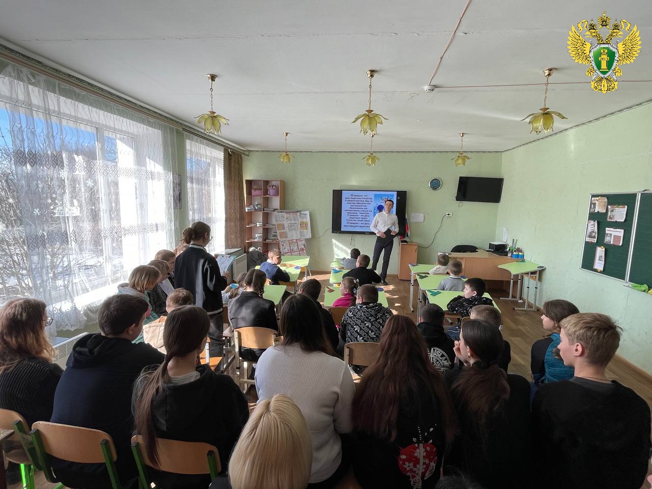 Представители прокуратуры Черниговского района в рамках мероприятий, посвященных Году защитника Отечества, в образовательных учреждениях района провели встречи с учащимися и педагогическими коллективами трех образовательных учреждений.