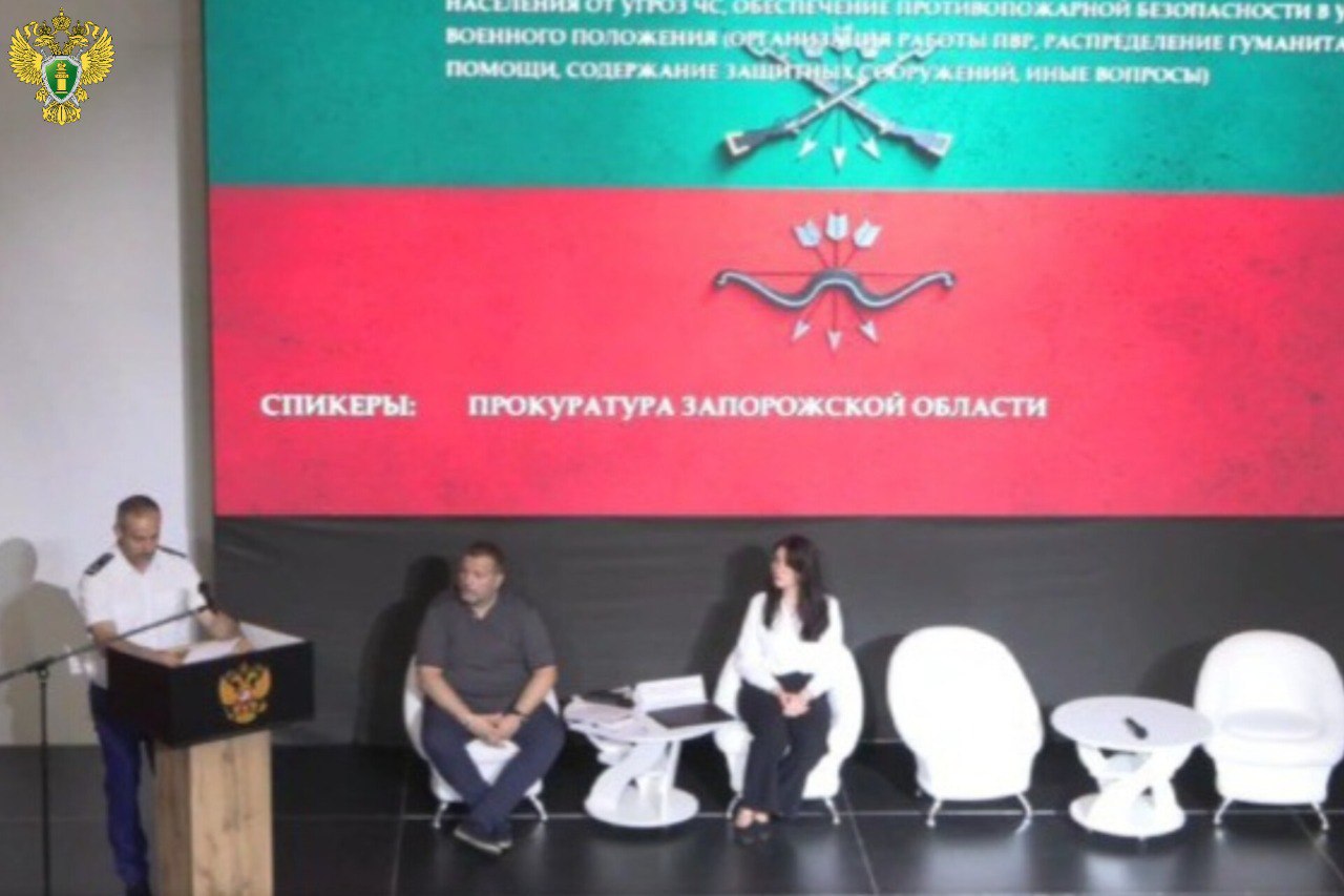 На мероприятии, на котором собрались специалисты региональных министерств, ведомств, организаций и учреждений, главы муниципальных образований и руководители профильных отделов администраций по комплексной безопасности, выступил старший прокурор отдела физической защиты и собственной безопасности прокуратуры Запорожской области Тимур Гаммаев.