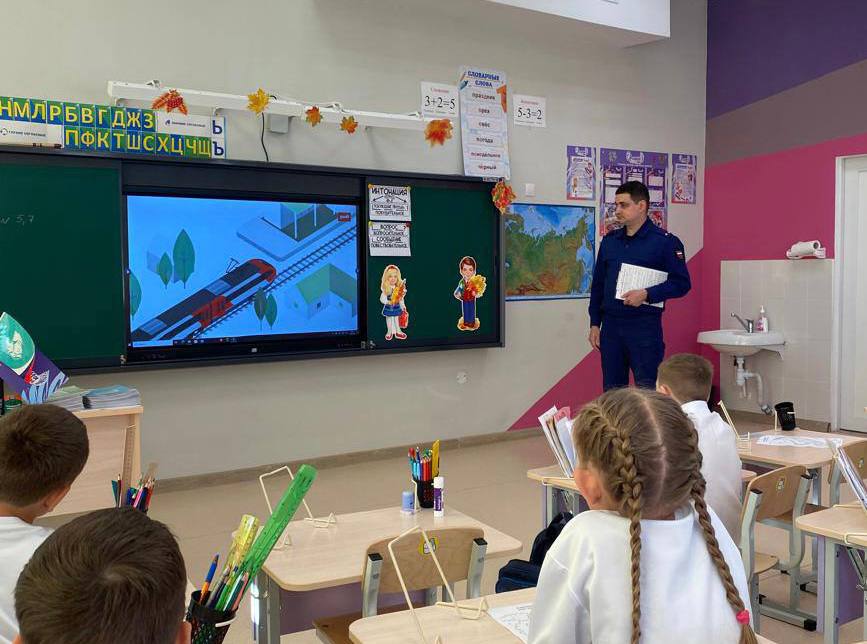 Красноуфимский транспортный прокурор Марат Баргаев рассказал ученикам 3 и 4 классов школы № 3 города Красноуфимска Свердловской области о правилах безопасного поведения на железной дороге.