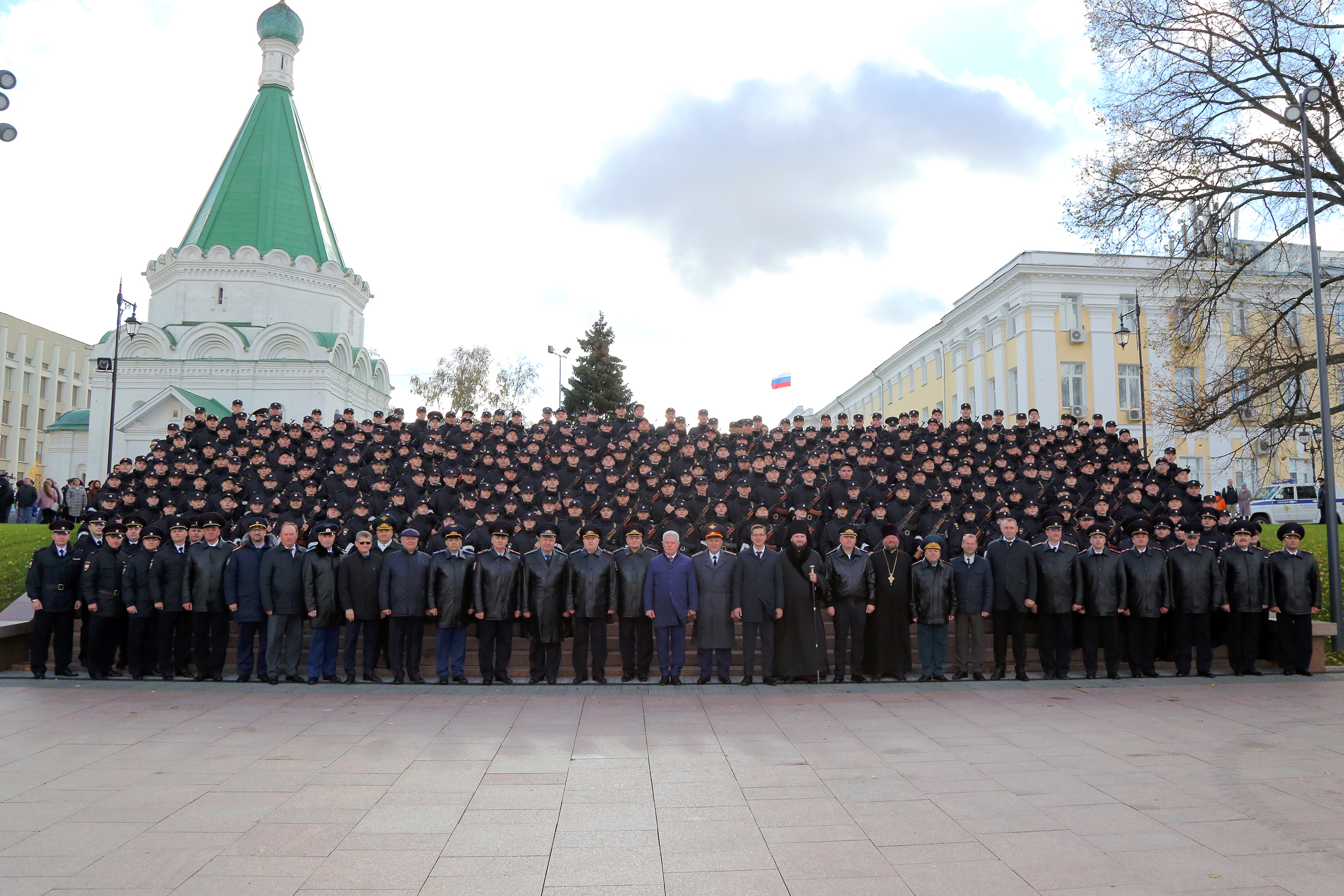 Торжественная церемония началась с выноса Государственного флага Российской Федерации и знамени Нижегородской академии МВД России. После чего состоялся благодарственный молебен, проведенный служителями Нижегородской Епархии.