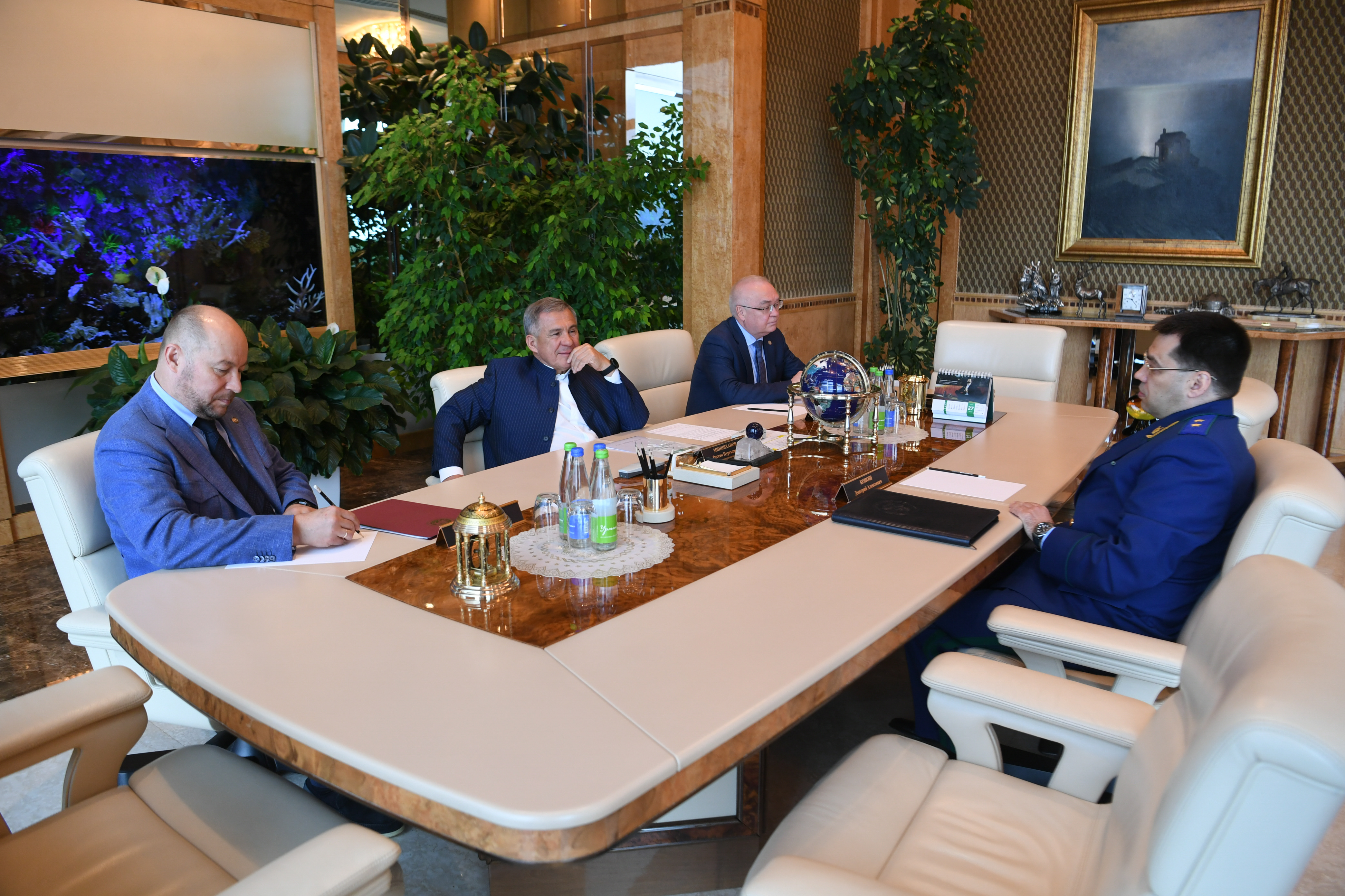 Приволжский транспортный прокурор Дмитрий Конош 09 июня 2022 года в ходе рабочей поездки в Татарстан встретился с Президентом Республики Рустамом Миннихановым.