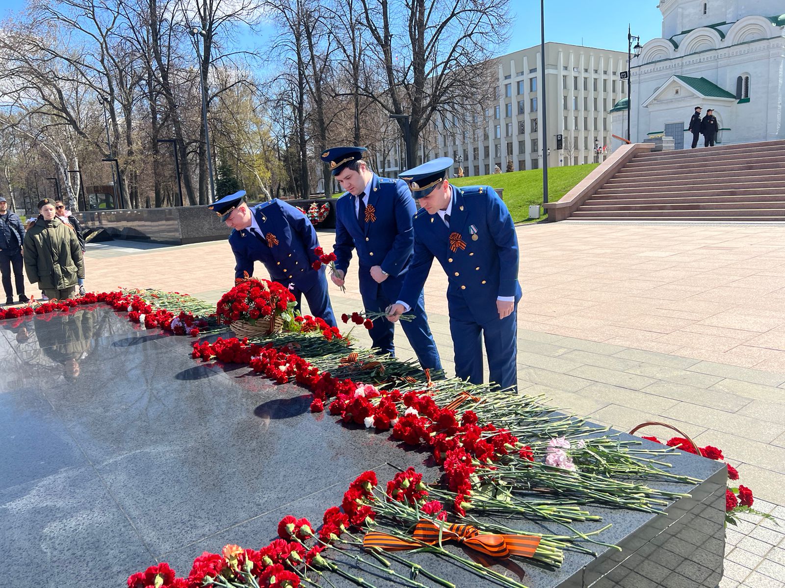 Работники Нижегородской транспортной прокуратуры возложили цветы к мемориалу «Вечный огонь» на территории Нижегородского кремля и почтили память участников войны и тружеников тыла минутой молчания