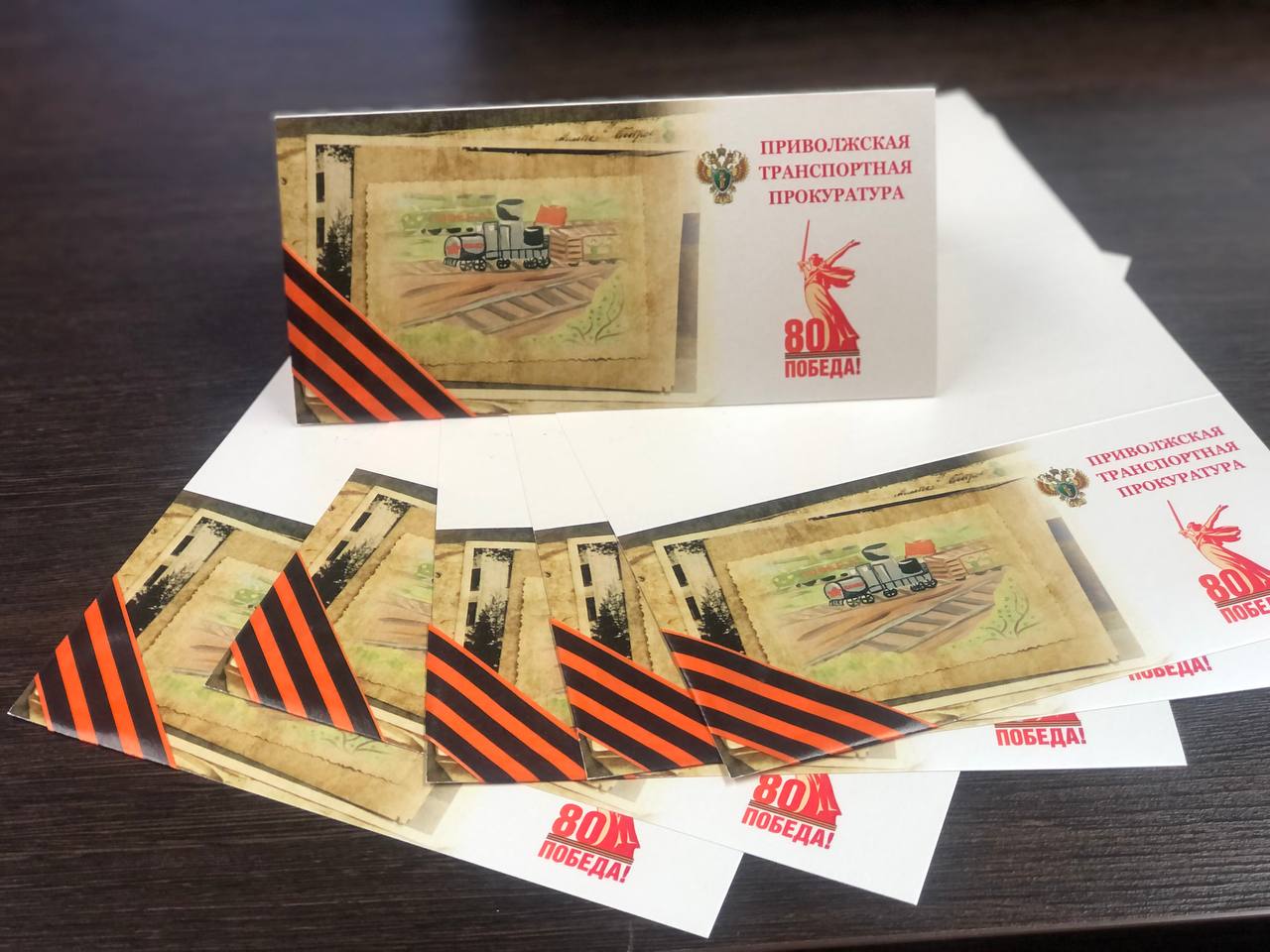В Приволжской транспортной прокуратуре 07 мая 2025 года работникам вручили поздравительные открытки с изображением рисунка победителя детского конкурса ко Дню Победы