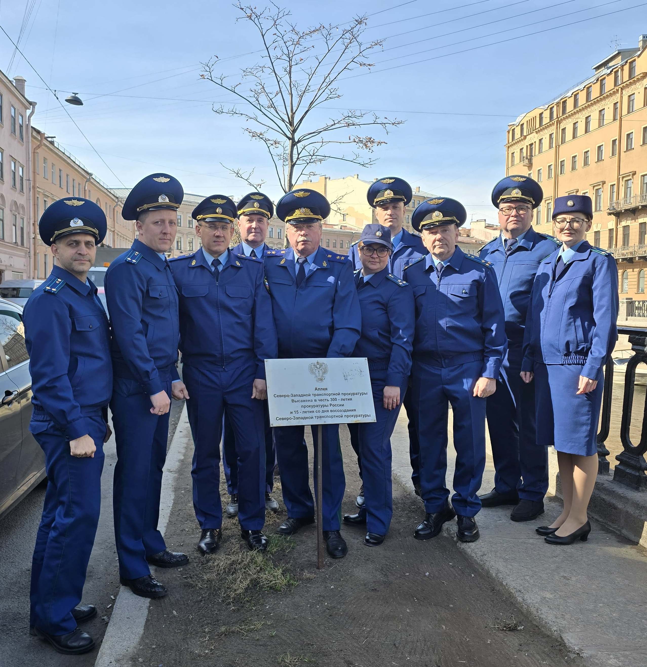 В преддверии 80-летия Победы в Великой Отечественной войне Северо-Западный транспортный прокурор Владимир Владимиров и его подчиненные на набережной канала Грибоедова провели торжественное мероприятие у «Прокурорской аллеи», высаженной к 300-летию прокуратуры России и 15-летию воссоздания Северо-Западной транспортной прокуратуры.