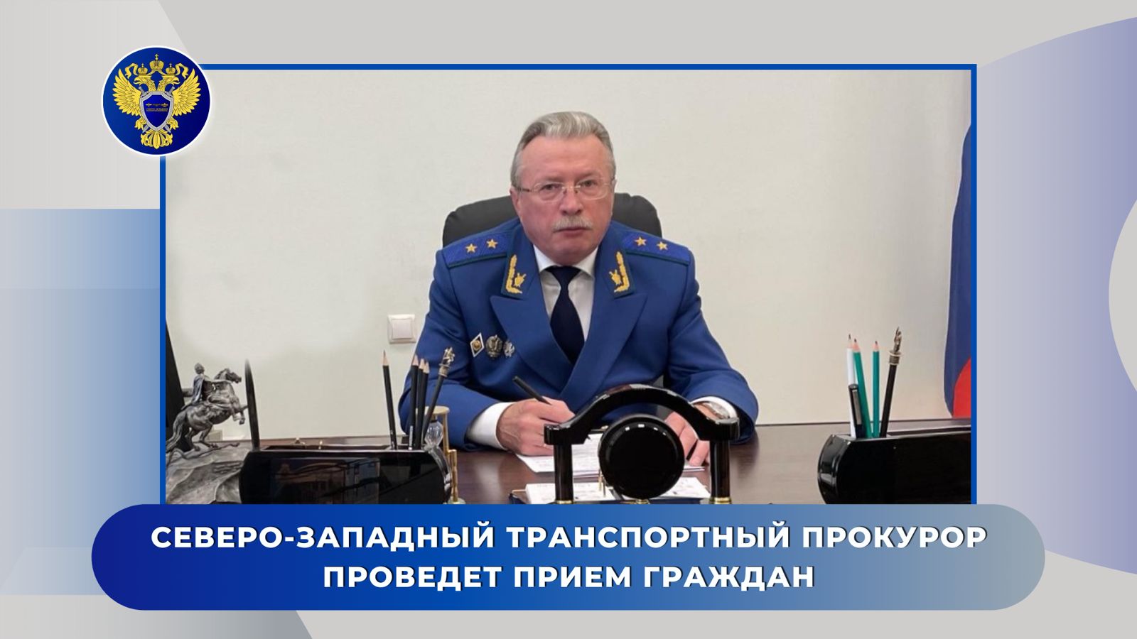 Северо-Западный транспортный прокурор Владимир Владимиров проведет ряд важных мероприятий и откроет мобильную приемную в Псковской области