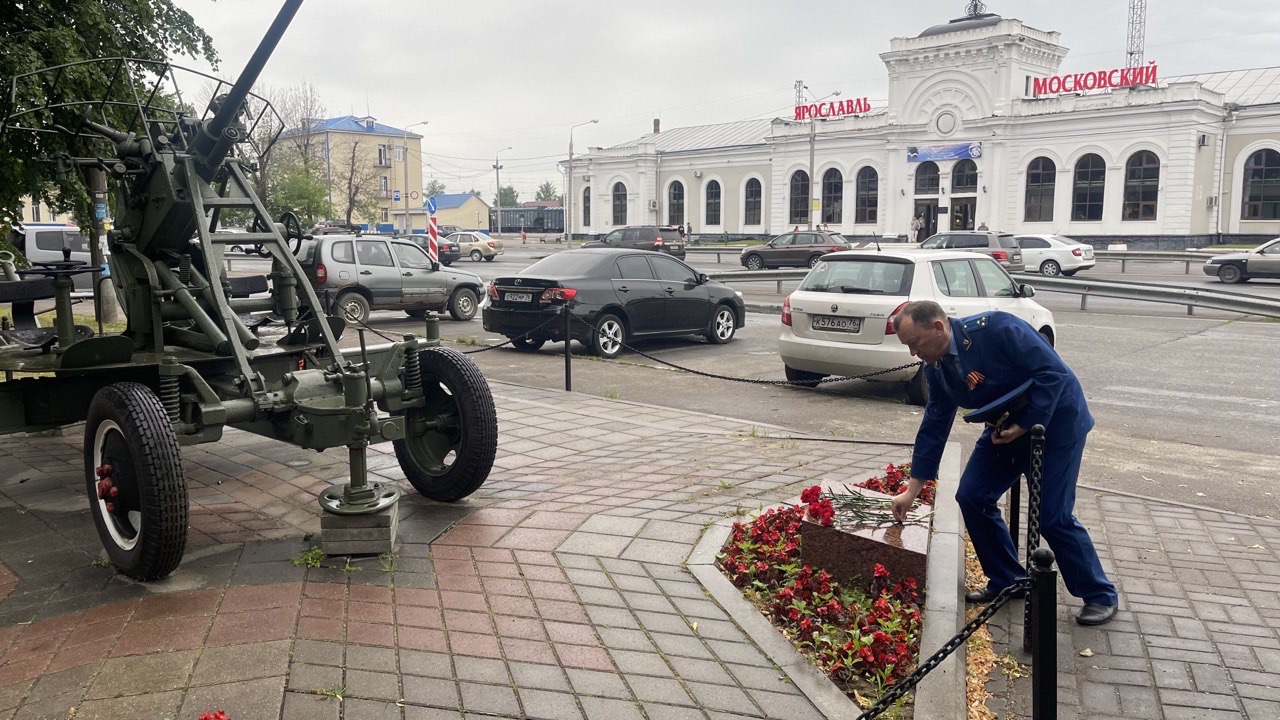 Ярославский транспортный прокурор, его подчиненные и представители Северной региональной дирекции железнодорожных вокзалов филиала ОАО «РЖД» возложили цветы к памятнику зенитчиков - защитников ярославского неба.