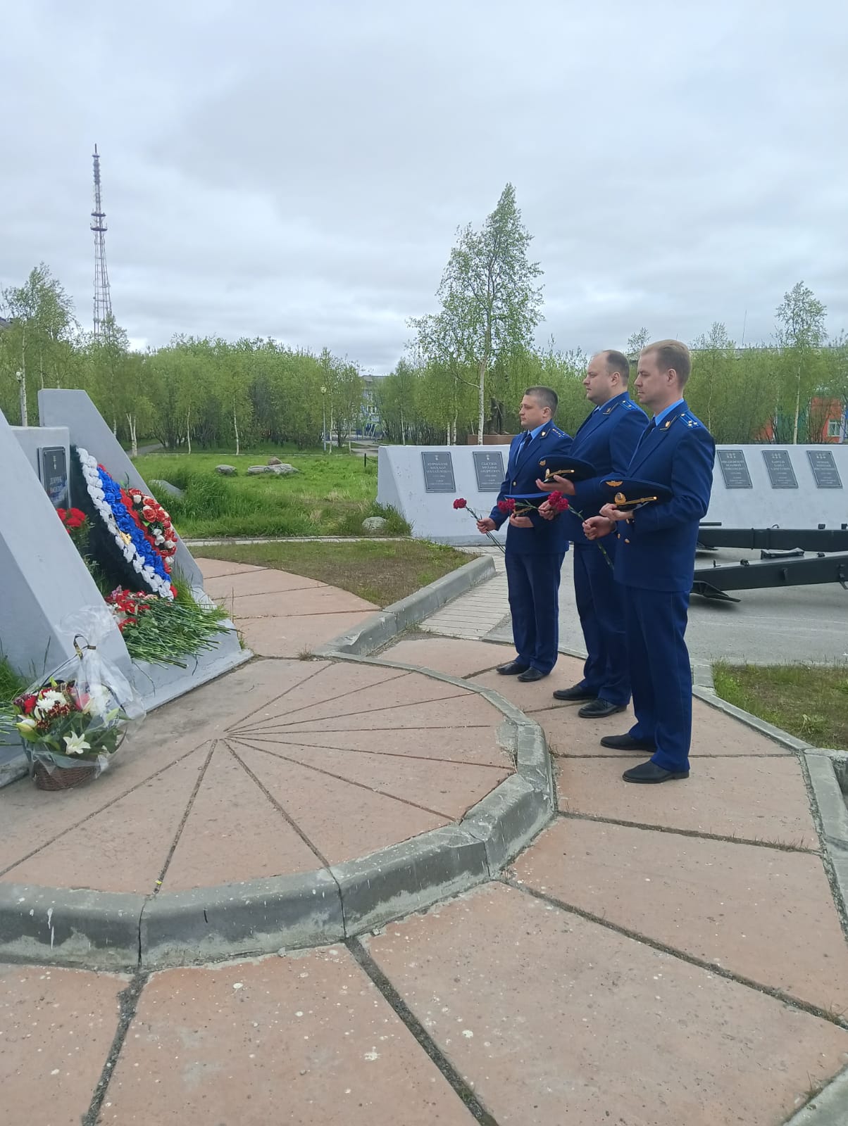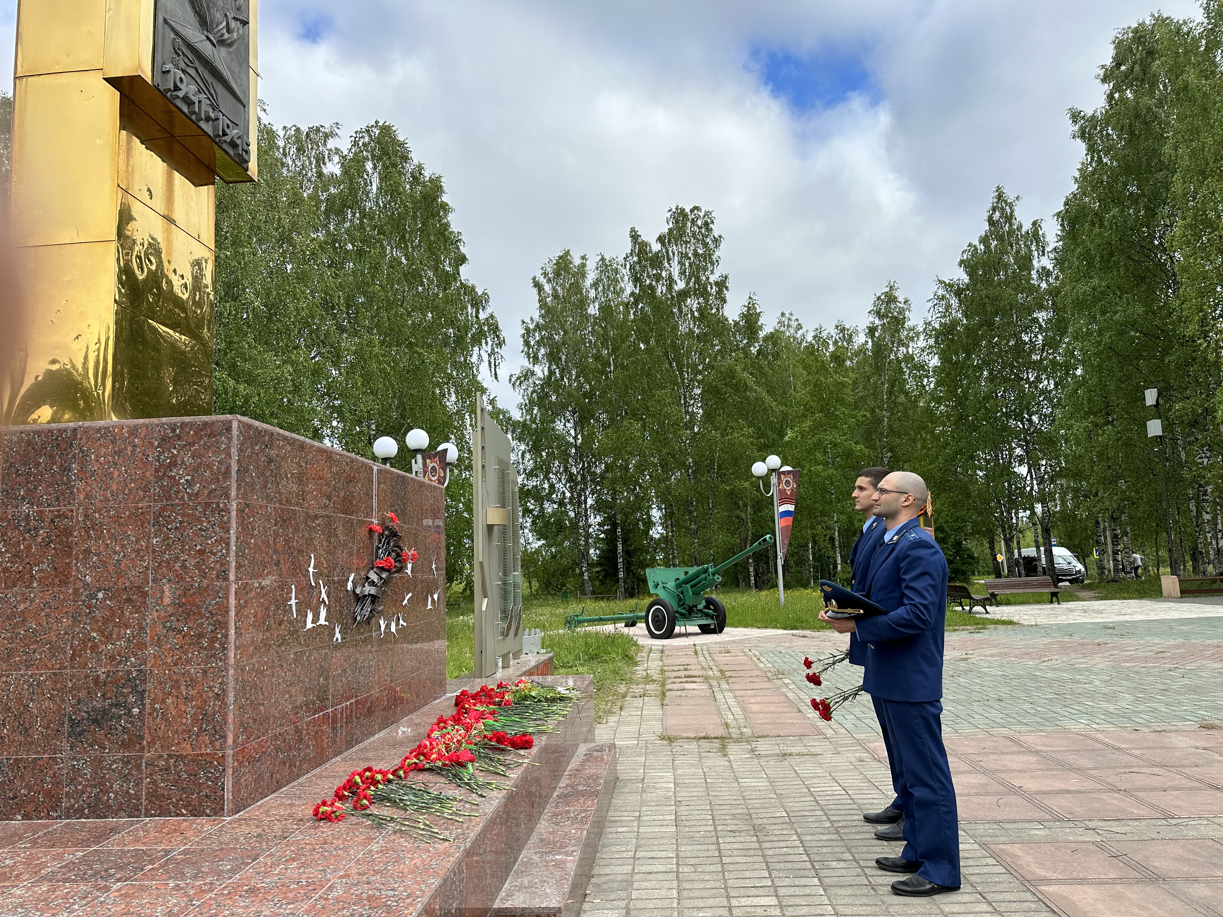 Сосногорский транспортный прокурор Александр Ходус и его заместитель Владислав Смирнов возложили цветы к мемориальному комплексу в сквере Победы г. Сосногорска и почтили память погибших минутой молчания.
