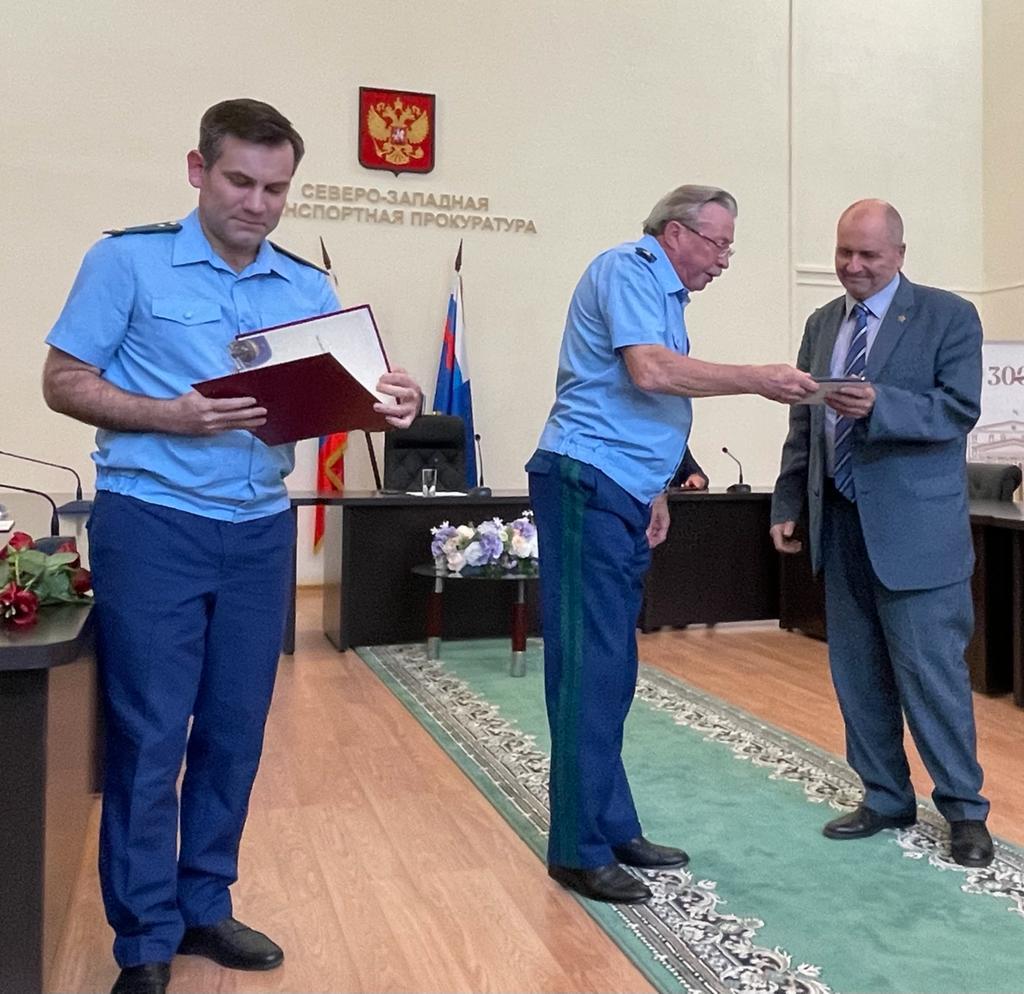 Северо-Западный транспортный прокурор Владимир Владимиров поздравил ветерана, Почетного работника прокуратуры Александра Дворянского с 70-летним юбилеем.
