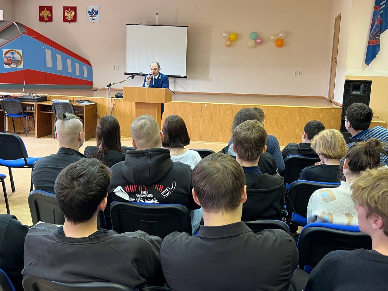Печорский транспортный прокурор Александр Иванов выступил с тематической лекцией перед курсантами речного училища. Проинформировал об официальных государственных символах Российской Федерации. Напомнил об ответственности за противоправные действия.