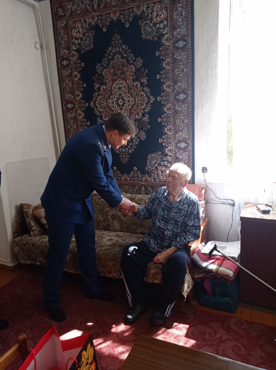 Прокуроры поздравили Михаила Фомича и Евгения Петровича с праздником Великой Победы пожелали здоровья и долгих лет жизни, вручили памятные подарки.