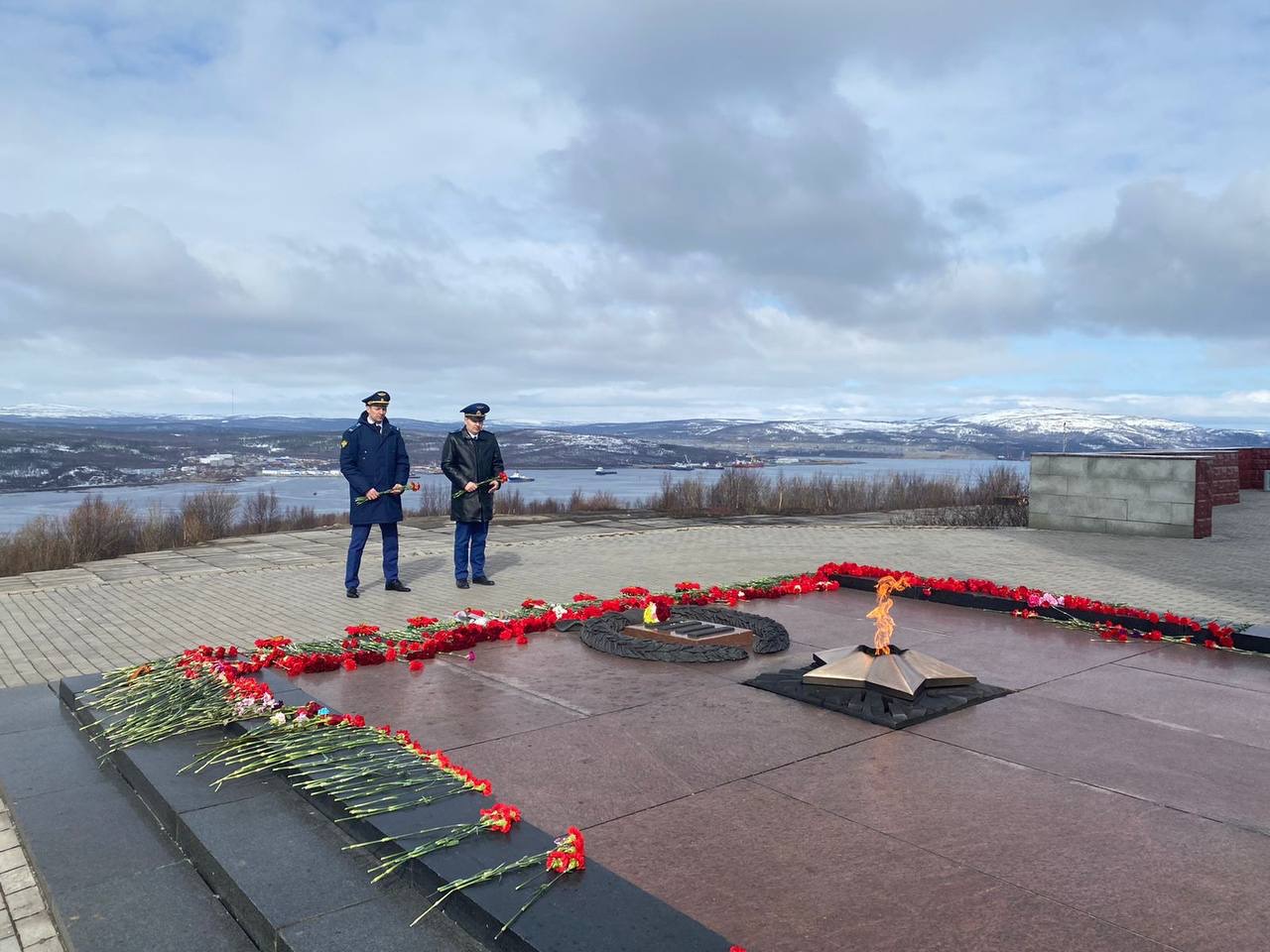 Коллектив Мурманской транспортной прокуратуры возложил цветы к Вечному огню мемориального комплекса «Защитникам Советского Заполярья в годы Великой Отечественной войны».