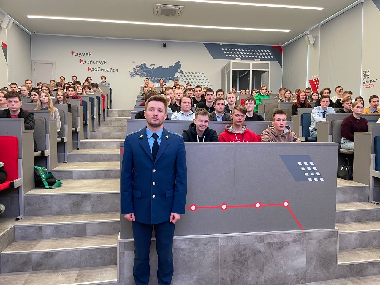 Ярославский транспортный прокурор Павел Пучков и его подчиненные Эмма Коваль и Максим Юрчук встретились со студентами филиала университета путей сообщения Императора Александра I и работниками электровозоремонтного завода имени Б. П. Бещева.