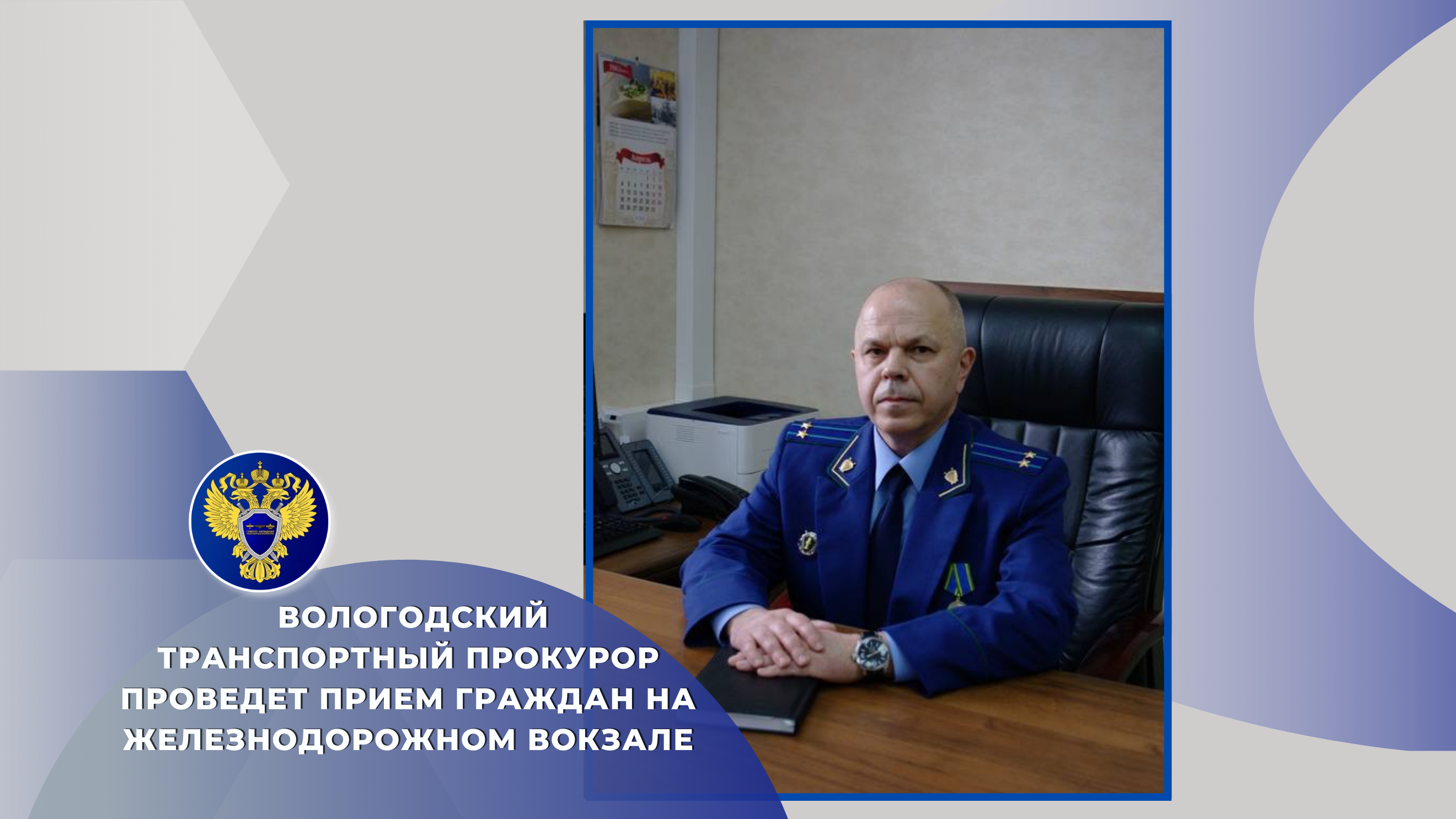 Вологодский транспортный прокурор Вадим Сурин 7 марта 2023 года с 11 до 12 часов проведет прием граждан в здании железнодорожного вокзала города Череповец.