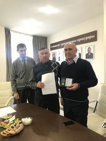 В присутствии оперативных работников Сочинской транспортной прокуратуры ветеранам за продолжительную и безупречную службу в органах прокуратуры, заслуги в деле укрепления законности, активное участие в работе ветеранской организации были вручены награды Генерального прокурора России: Виталику Айсовичу Агумаве– «Медаль Руденко», Александру Викторовичу Левицкому – знак отличия «За верность закону П степени».