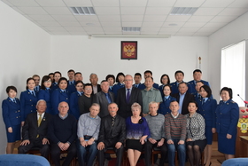 Затем ветераны выехали в Калмыкию, где состоялась встреча с председателем Совета ветеранов прокуратуры республики Калмыкия Аксеновым И.Ч., бывшим прокурором следственного отдела Северо-Кавказской транспортной прокуратуры Габуновым Н.Э., бывшим Элистинским транспортным прокурором Ханджиевой О.Д.