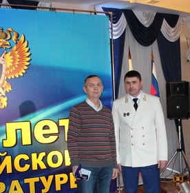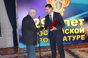 В торжественной обстановке участники посмотрели видеопоздравление Генерального прокурора России Чайки Ю.Я. с юбилеем прокуратуры, Южный транспортный прокурор Крук Г.В. от имени Генерального прокурора вручил награды, которыми, наряду с действующими работниками, были удостоены и ветераны.