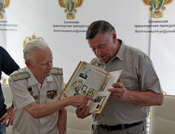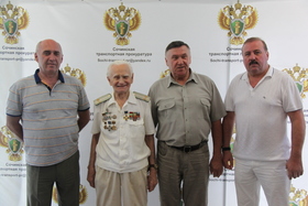 В этот же день в Сочинской транспортной прокуратуре собрались оперативные работники прокуратуры во главе с прокурором Сидоровым С.В., председатель ветеранской организации Южной транспортной прокуратуры Иващенко А.А., ветераны Сочинской транспортной прокуратуры Агумава В.А., Артюхова А.А., Рязанцев Ю.А.