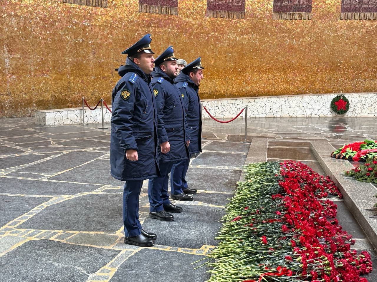 Работники Волгоградской транспортной прокуратуры приняли участие в церемонии возложения цветов в Зале Воинской Славы на Мамаевом кургане, почтили память защитников Отечества минутой молчания.