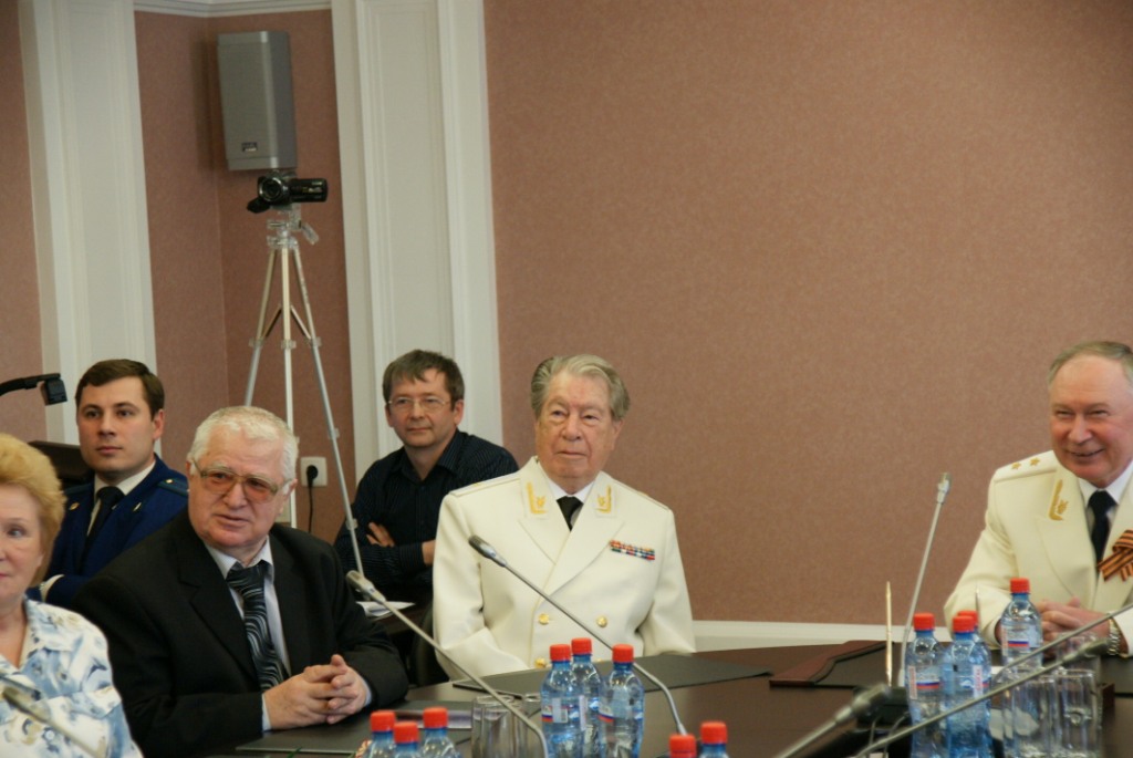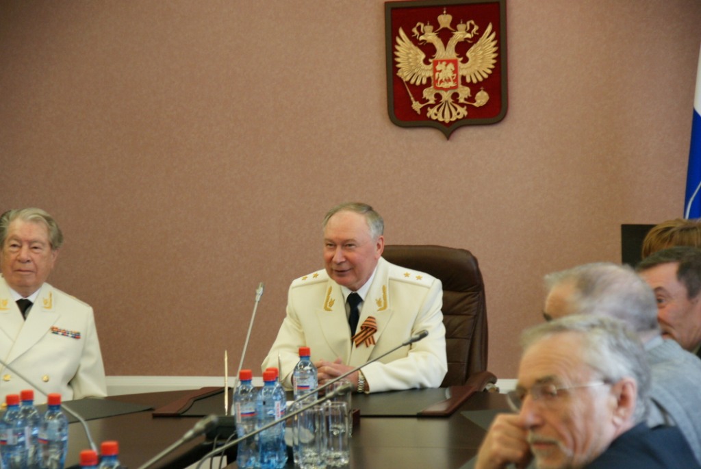 С поздравлением выступил Председатель Совета ветеранов Восточно-Сибирской транспортной прокуратуры бывший Восточно-Сибирский транспортный прокурор государственный советник юстиции 3 класса Барский Георгий Яковлевич, который, в частности, отметил важное значение, придаваемое Генеральной прокуратурой Российской Федерации деятельности общественных организаций ветеранов органов прокуратуры в обеспечении преемственности поколений, поделился воспоминаниями о работе в прокуратуре в послевоенный период, о высоком профессиональном мастерстве прокуроров-фронтовиков, с которыми он работал.