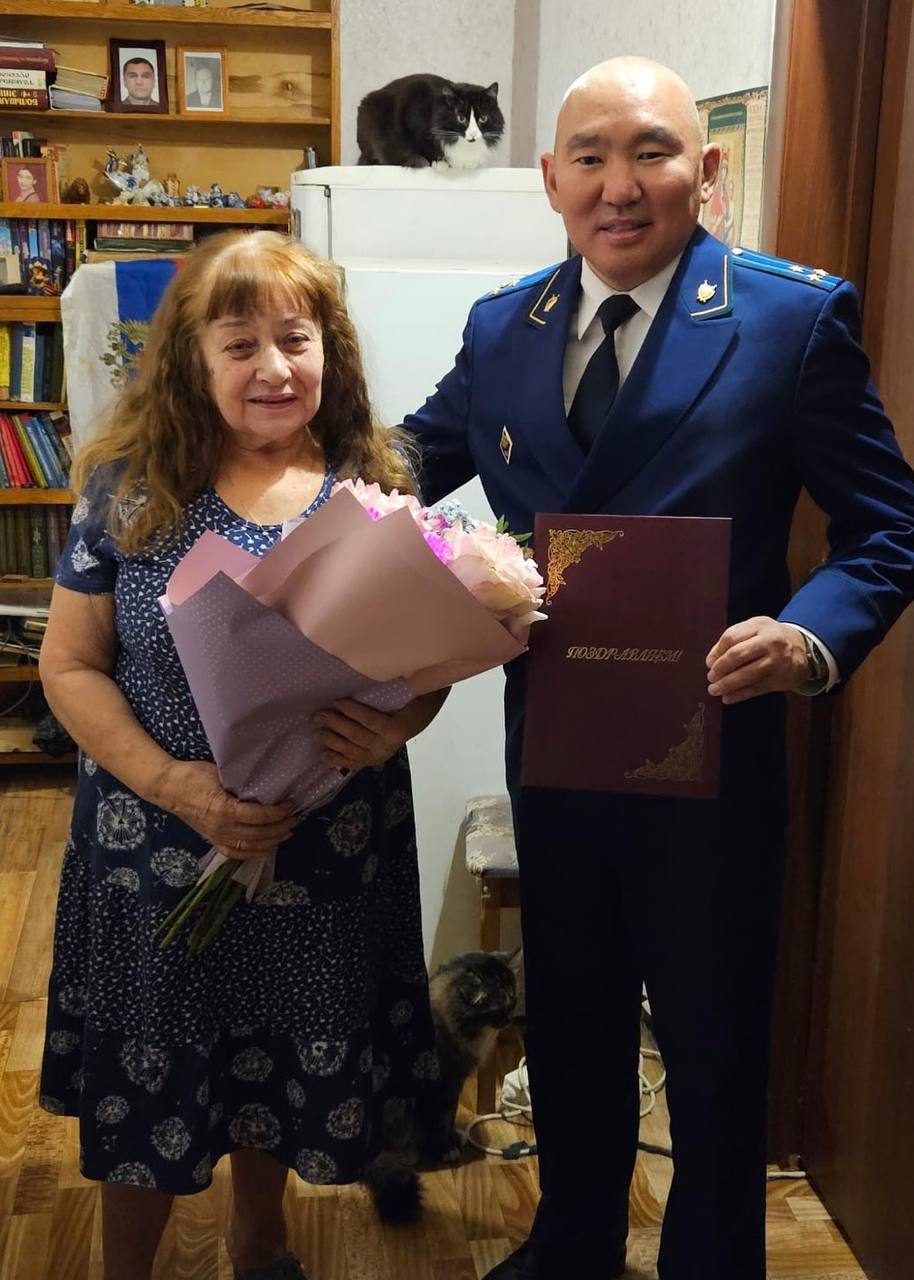 Якутский транспортный прокурор Артём Ильин также поздравил ветерана и пенсионера органов прокуратуры Галину Ивановну Кармадонову.