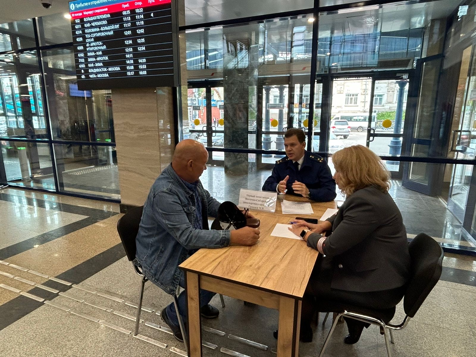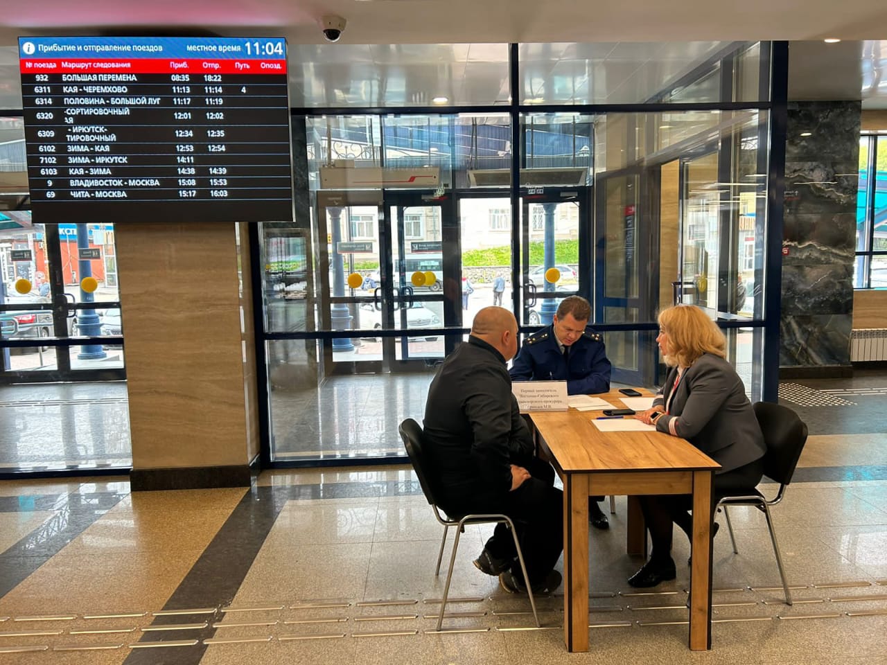 Первый заместитель Восточно-Сибирского транспортного прокурора Максим Гришаев провел выездной прием граждан на железнодорожном вокзале г. Иркутска.