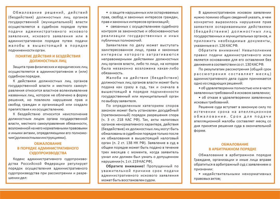 Буклет по вопросу обжалования в административном и (или) судебном порядке решений, принятых должностными лицами органов власти. Подготовлен прокуратурой Саратовской области во взаимодействии с ФГБОУ ВО "Саратовская государственная юридическая академия", изготовлен и распространен в количестве 500 экземпляров.