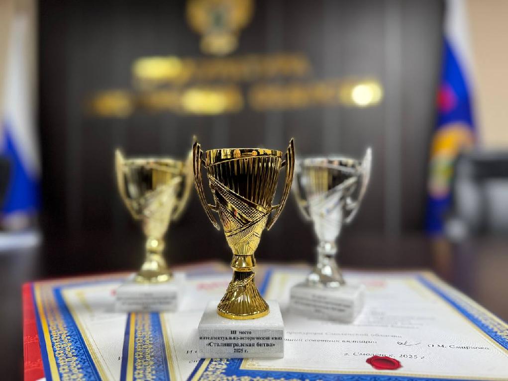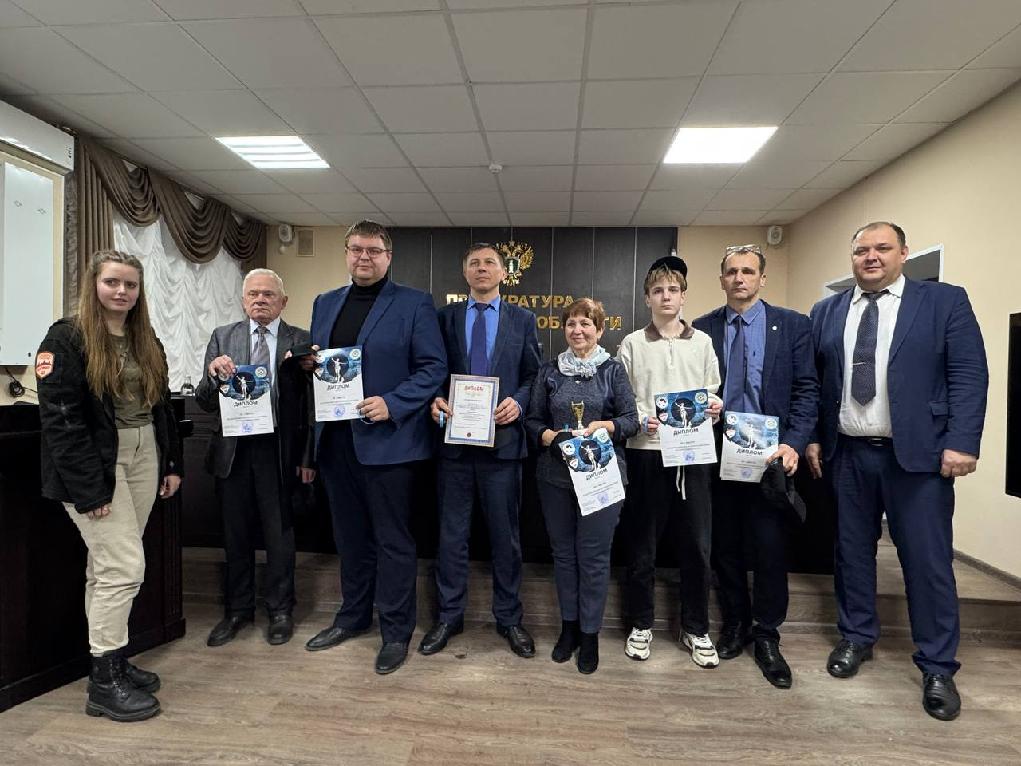 В завершении патриотического квиза «Сталинградская битва» заместитель прокурора Смоленской области Чернеев Иван Валентинович поздравил победителей, вручил дипломы трех степеней и кубки.