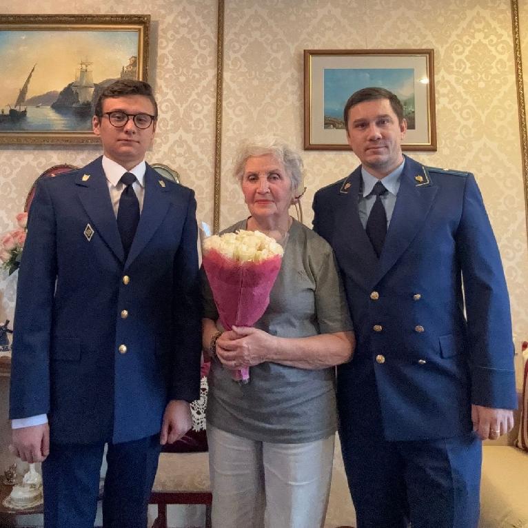 Старший помощник прокурора района Вадим Хипов и помощник прокурора района Никита Богданов пожелали Галине Ивановне крепкого здоровья, неиссякаемой энергии, благополучия, добра, поддержки родных и близких.
