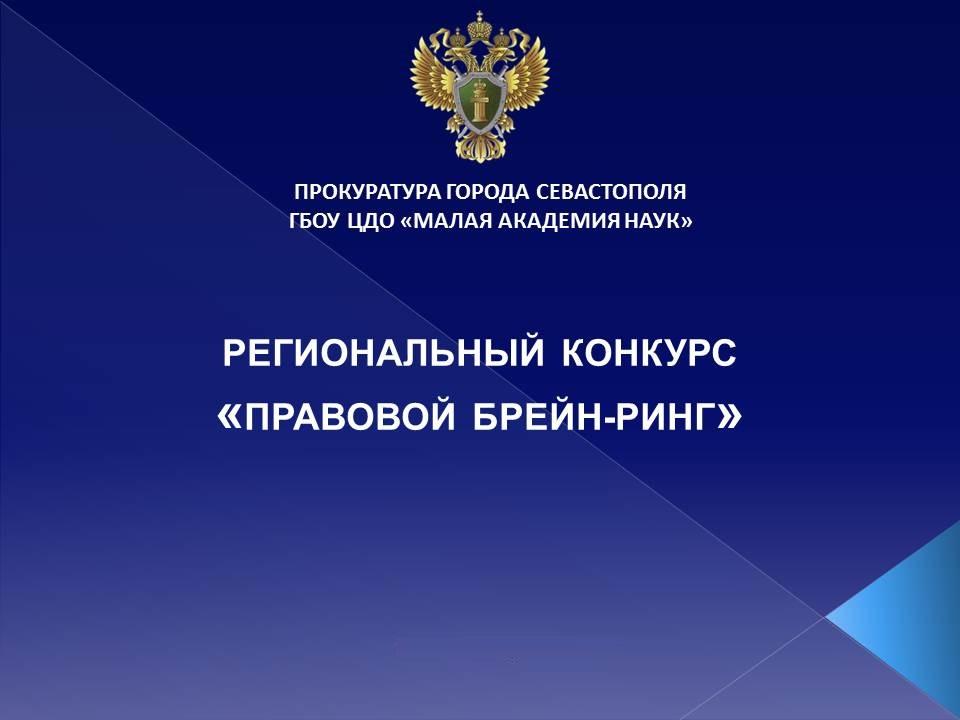 Прокуратура города Севастополя совместно с ГБОУ ЦДО «Малая академия наук» проводит третий ежегодный региональный конкурс «Правовой брейн-ринг» среди учащихся 9-10 классов общеобразовательных школ.