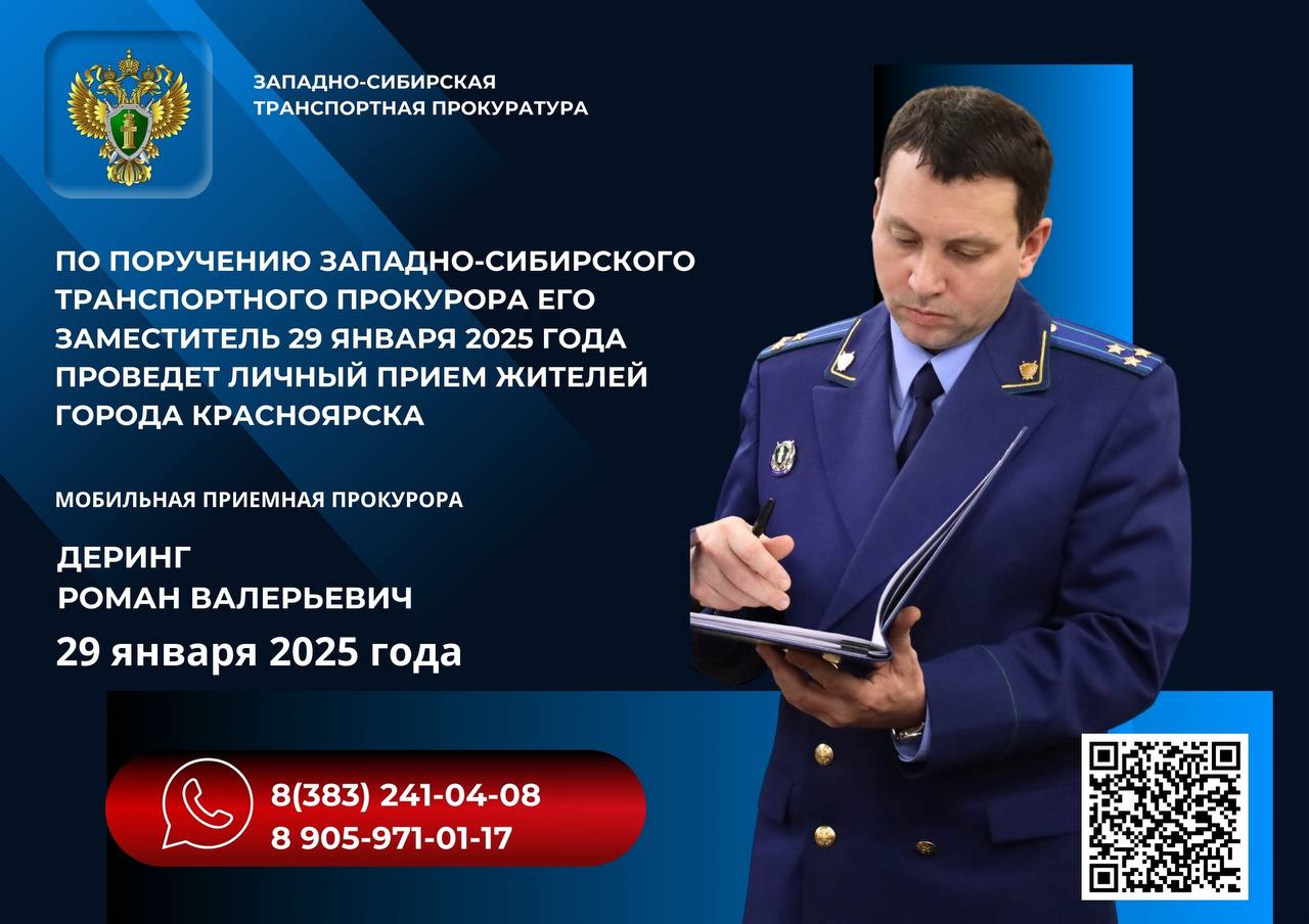 По поручению Западно-Сибирского транспортного прокурора его заместитель 29 января 2025 года проведет личный прием жителей города Красноярска