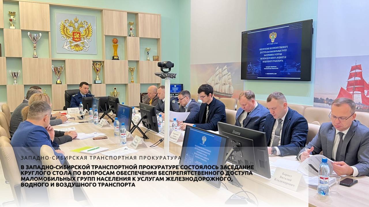 Сегодня под председательством заместителя Западно-Сибирского транспортного прокурора Деринга Р.В. прошло заседание участников круглого стола по вопросам обеспечения беспрепятственного доступа маломобильных групп населения к услугам железнодорожного, водного и воздушного транспорта.