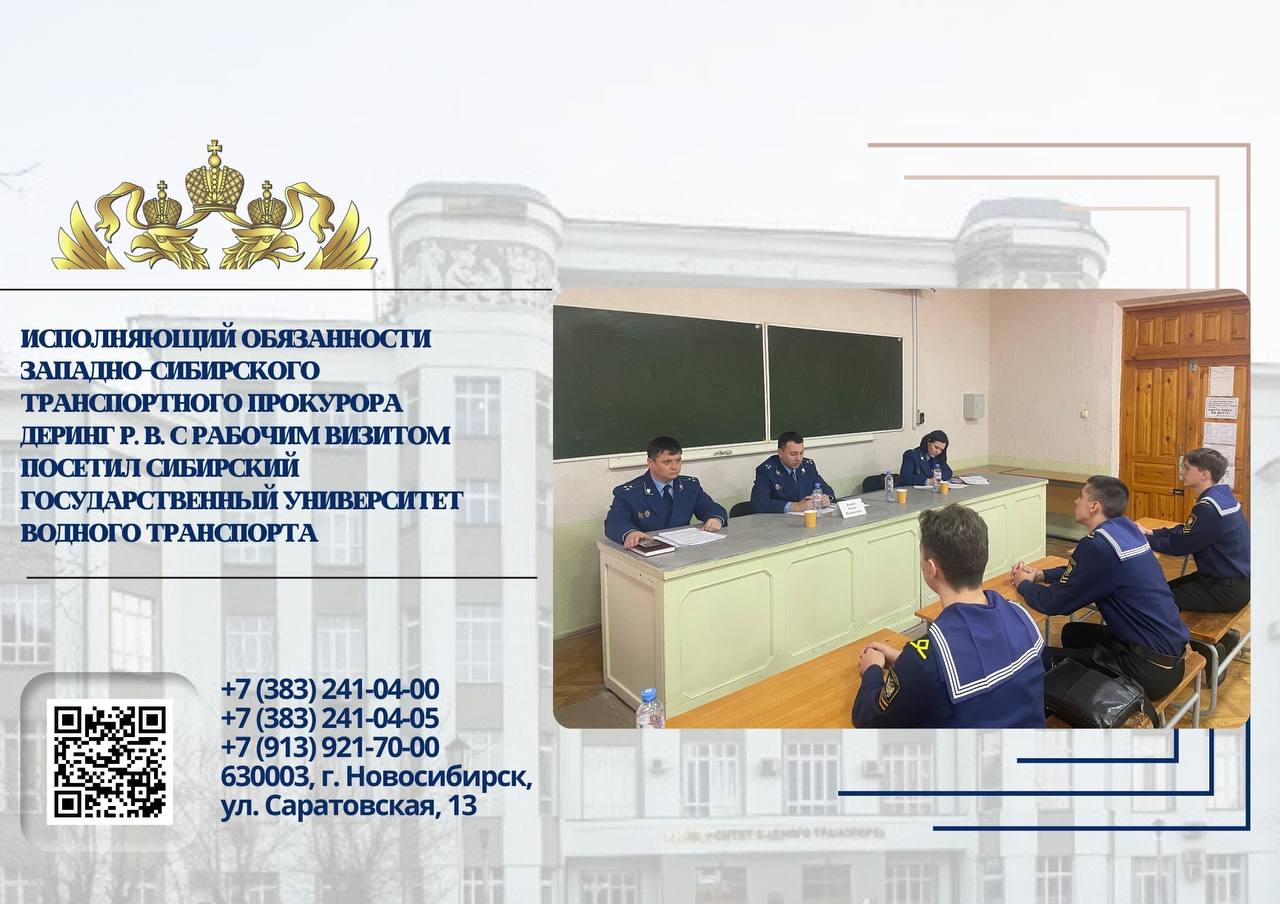 Исполняющий обязанности Западно-Сибирского транспортного прокурора Роман Валерьевич Деринг провел ряд мероприятий в ФГБУ ВО «Сибирский государственный университет водного транспорта».