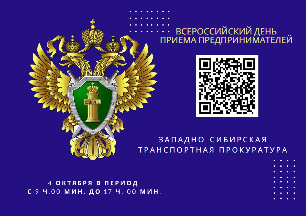 4 октября в Западно-Сибирской транспортной прокуратуре состоится очередной Всероссийский день приема предпринимателей