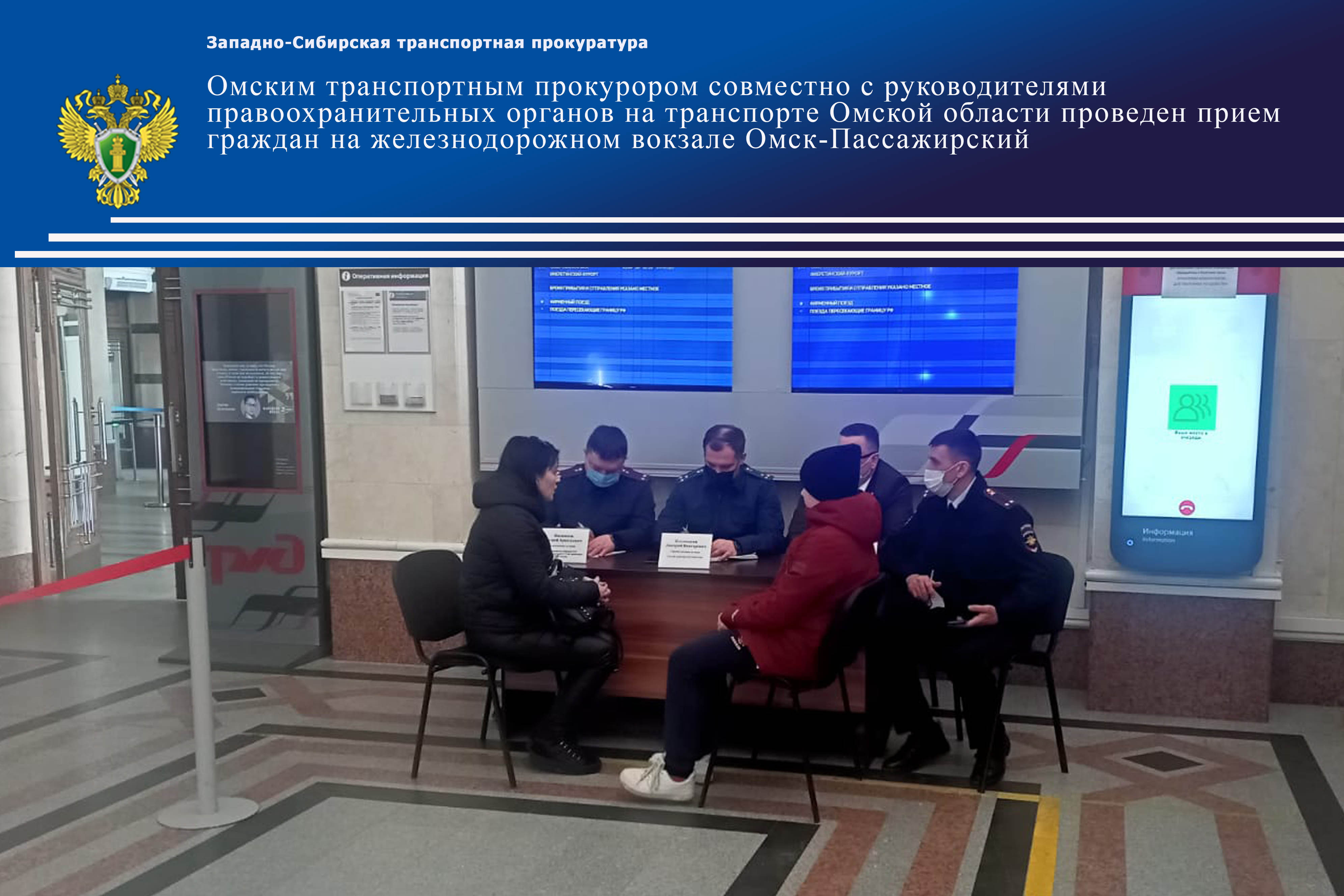 Омским транспортным прокурором совместно с руководителями правоохранительных органов на транспорте Омской области проведен прием граждан на железнодорожном вокзале Омск-Пассажирский