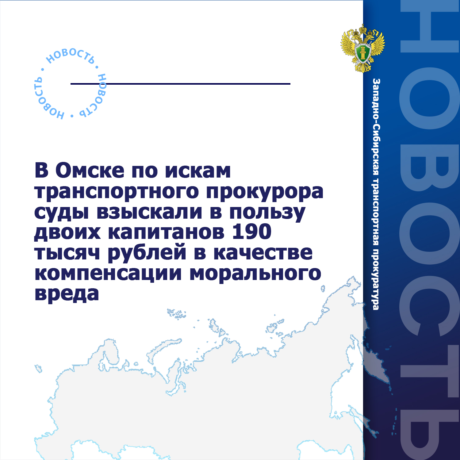В Омске по искам транспортного прокурора суды взыскали в пользу двоих капитанов 190 тысяч рублей в качестве компенсации морального вреда