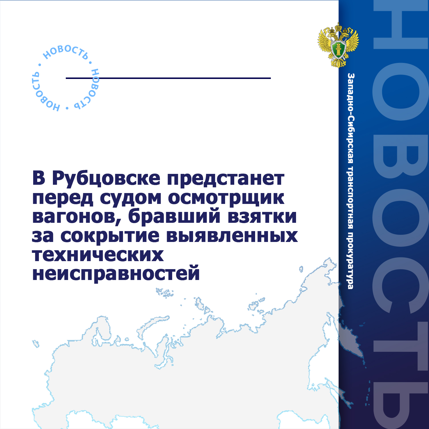 Рубцовской транспортной прокуратурой утверждено обвинительное заключение по уголовному делу в отношении осмотрщика вагонов контрольного поста на станции Новоблаговещенка Западно-Сибирской железной дороги, который обвиняется в совершении коррупционных преступлений, предусмотренных частью 3 статьи 290, частью 1 статьи 291.2 Уголовного кодекса Российской Федерации (получение взятки за совершение заведомо незаконного бездействия, мелкое взяточничество).