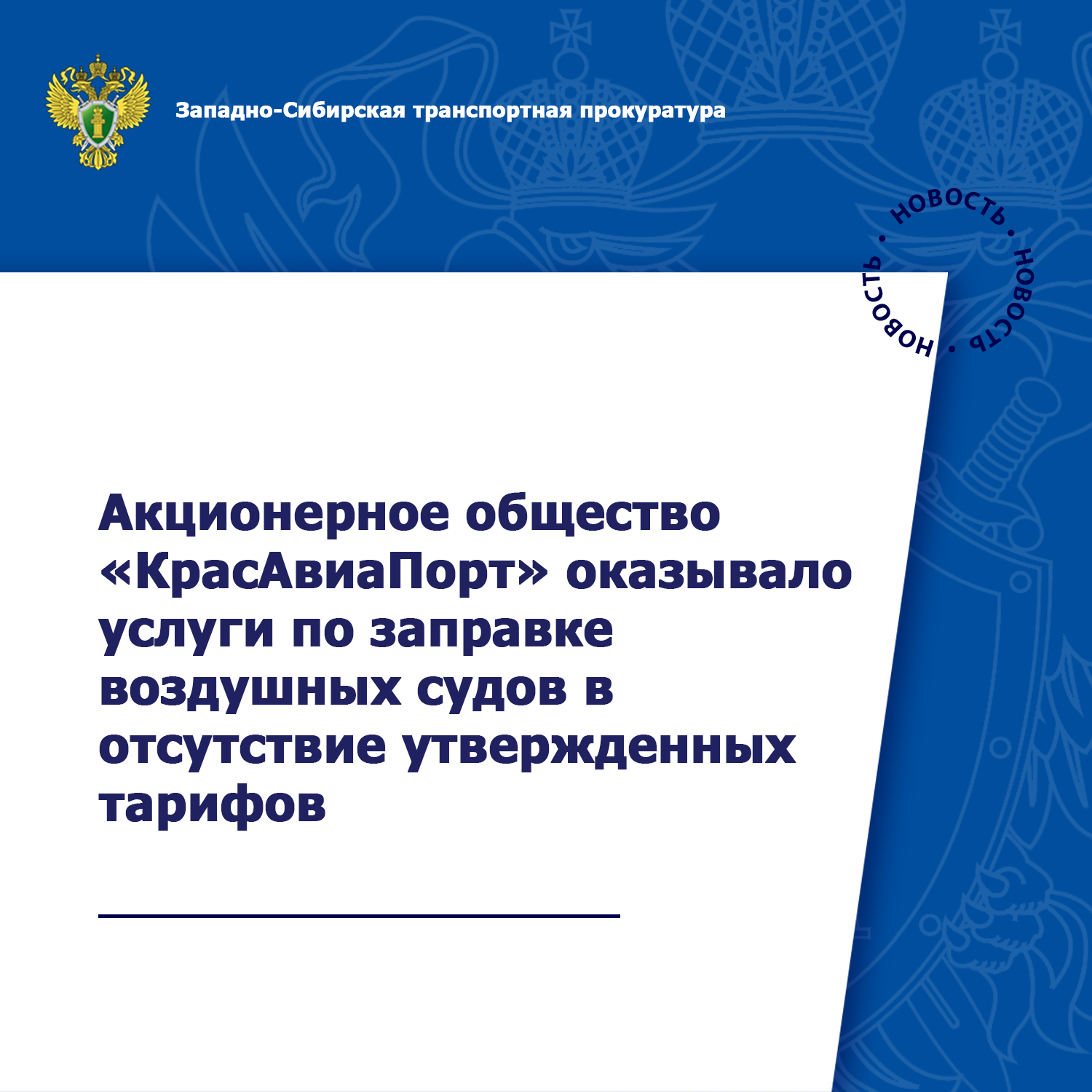 Акционерное общество «КрасАвиаПорт» оказывало услуги по заправке воздушных судов в отсутствие утвержденных тарифов