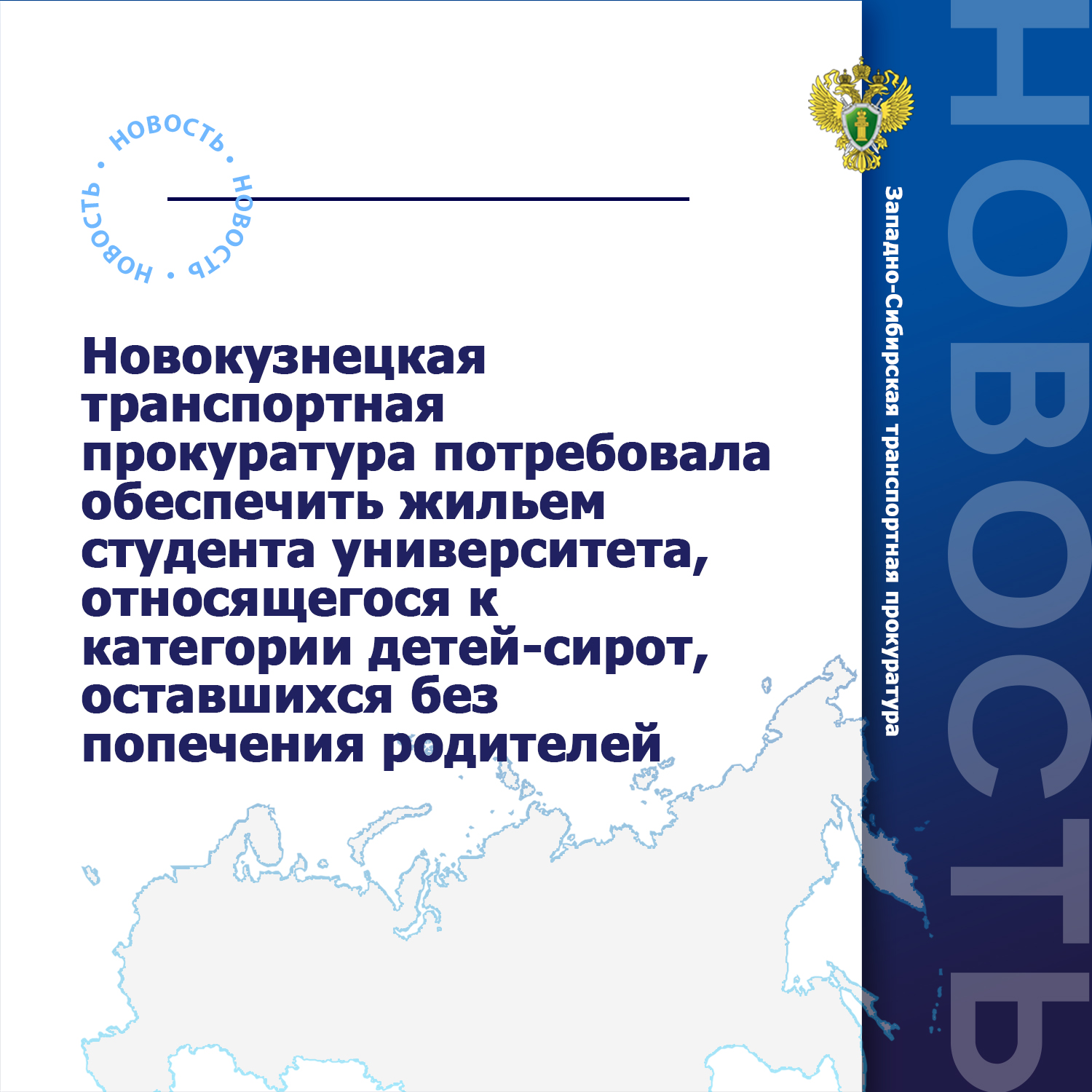 Новокузнецкая транспортная прокуратура потребовала обеспечить жильем студента университета, относящегося к категории детей-сирот, оставшихся без попечения родителей