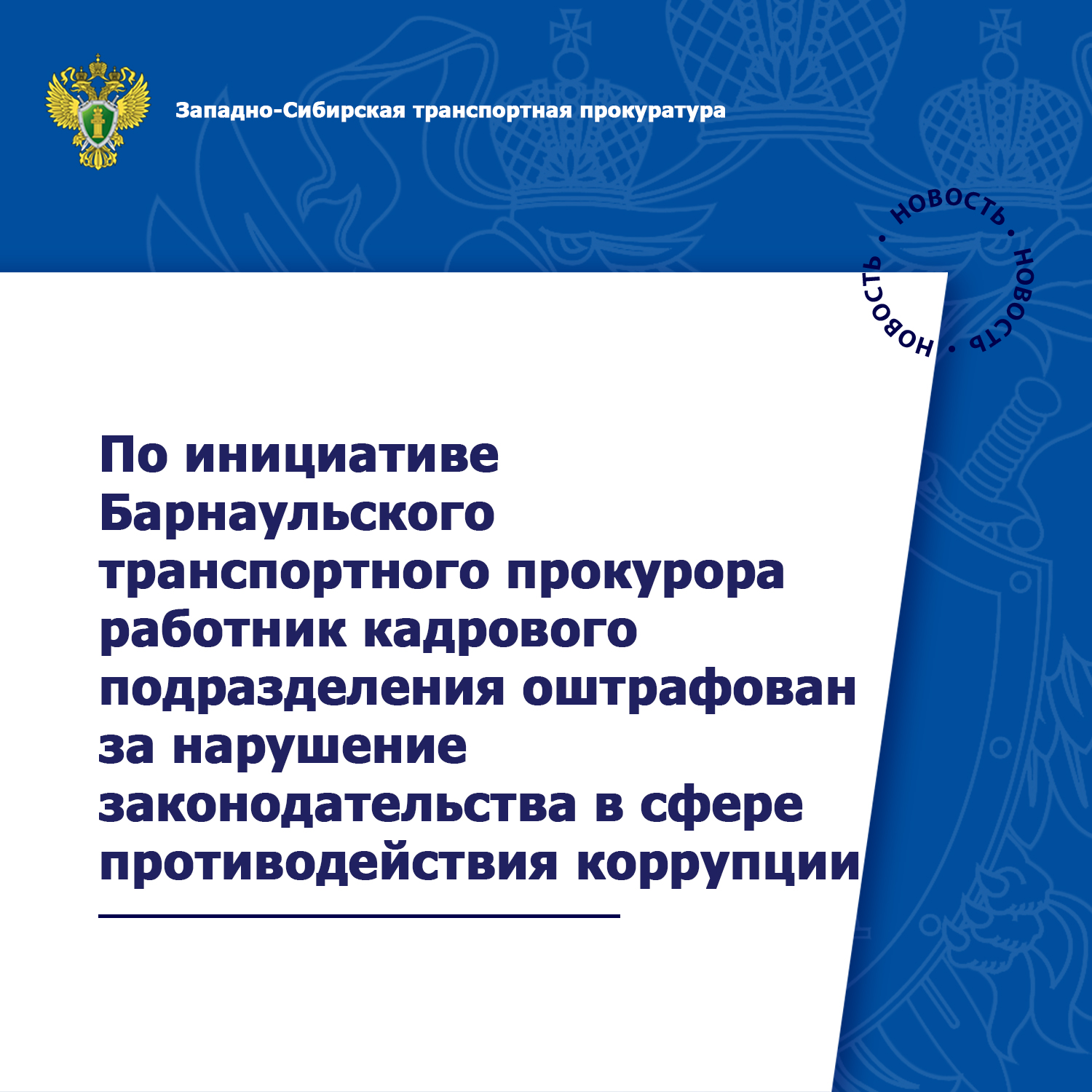 По инициативе Барнаульского транспортного прокурора работник кадрового подразделения оштрафован за нарушение законодательства в сфере противодействия коррупции