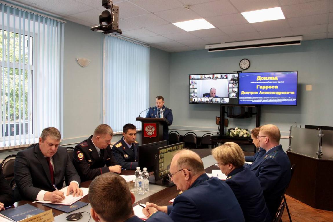 В совещании приняли участие представители правоохранительных органов республики, работники прокуратуры республики, а также по видеоконференцсвязи прокуроры городов и районов.