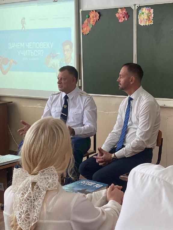 По завершении торжественных мероприятий прокурор края провел встречу с обучающимися старших классов, посвященную развитию патриотизма и нравственности, выбору профессии и значимости получения образования.