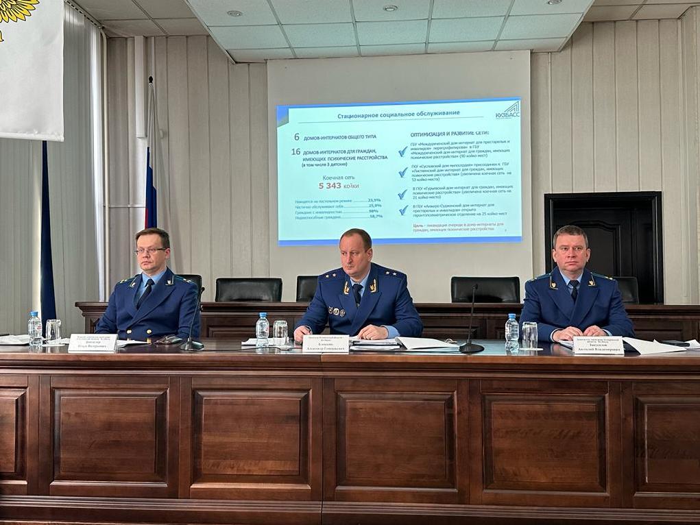 Сегодня, 27 апреля, под председательством прокурора области Александра Блошкина состоялось заседание коллегии прокуратуры Кемеровской области – Кузбасса по вопросам состояния законности и практики прокурорского надзора за исполнением законодательства в сфере социального обслуживания граждан, работы органов прокуратуры региона по приему граждан и рассмотрению обращений, в том числе взятых Генеральным прокурором Российской Федерации на особый контроль, состояния прокурорского надзора за процессуальной деятельностью органов предварительного расследования при принятии решений, повлекших незаконное привлечение к уголовной ответственности.