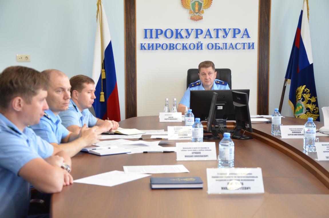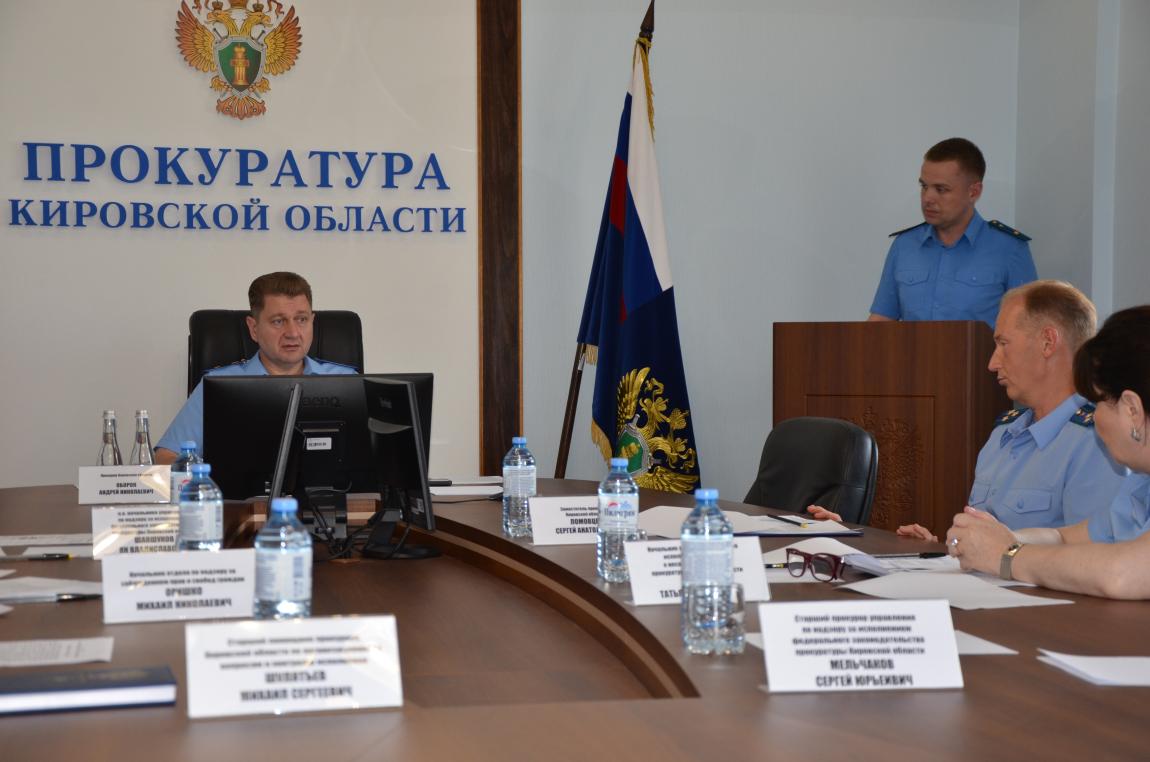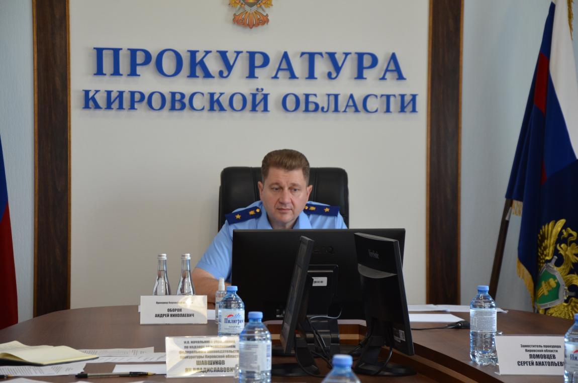 Мероприятие проведено в формате видеоконференцсвязи с участием работников прокуратуры Кировской области, городских, районных, межрайонных и специализированных прокуроров.