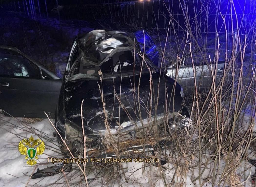 В результате дорожно-транспортного происшествия водитель автомобиля скончался на месте ДТП, 21-летняя пассажир автомобиля, получила телесные повреждения и доставлена в больницу Костромы.