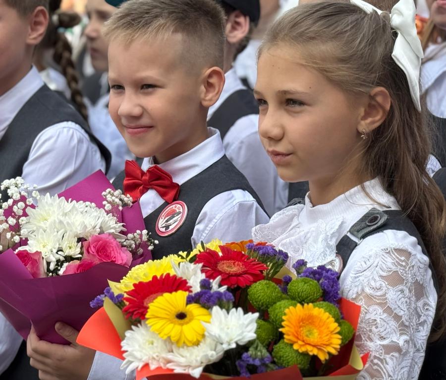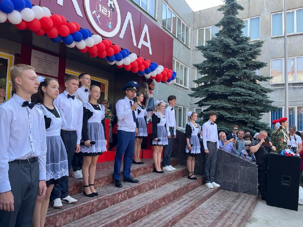 Торжественная линейка, посвященная Дню знаний, началась с выноса Юнармией Государственного флага и его поднятия под Гимн России. Затем приглашенные гости выступили с напутственными поздравлениями перед педагогами и учениками, которые в свою очередь гостям подарили творческие номера.