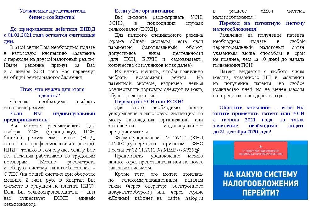 Памятка по вопросу отмены единого налога на вмененный доход. Разработана прокуратурой Саратовской области