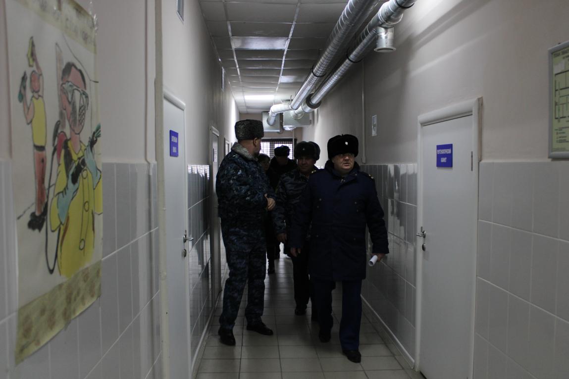В ходе проверки законности содержания под стражей подозреваемых и обвиняемых в совершении преступлений первый заместитель прокурора области посетил камерные помещения, а также помещения пищеблока, медицинской части и отряда по хозяйственному обслуживанию.