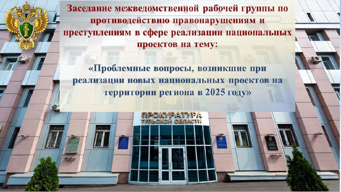 Накануне, 27.05.2025, под председательством заместителя прокурора области Натальи Безгиной в прокуратуре области состоялось очередное заседание межведомственной рабочей группы по противодействию правонарушениям и преступлениям в сфере реализации национальных проектов, в которой приняли участие представители правоохраны, органов государственной власти, являющиеся ответственными исполнителями национальных проектов, сотрудники прокуратуры.